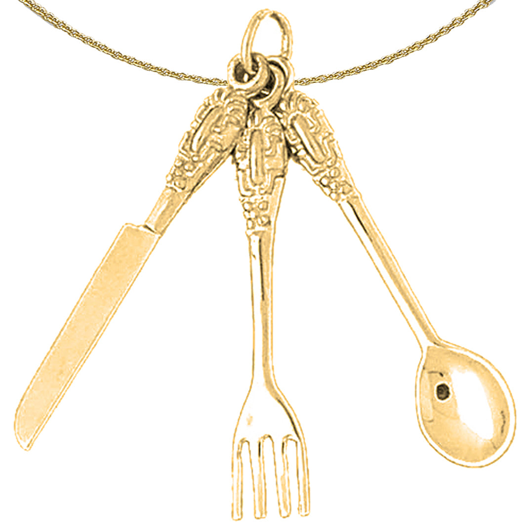 Yellow Gold-plated Silver Utensil Set, Knife, Fork, And Spoon Pendant