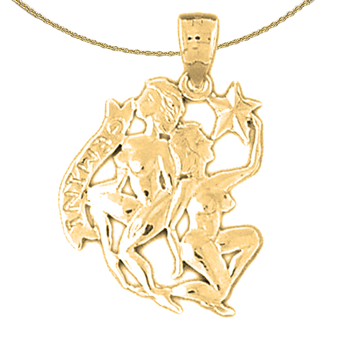 Sterling Silver Gemini Zodiac Sign Pendant (Rhodium or Yellow Gold-plated)