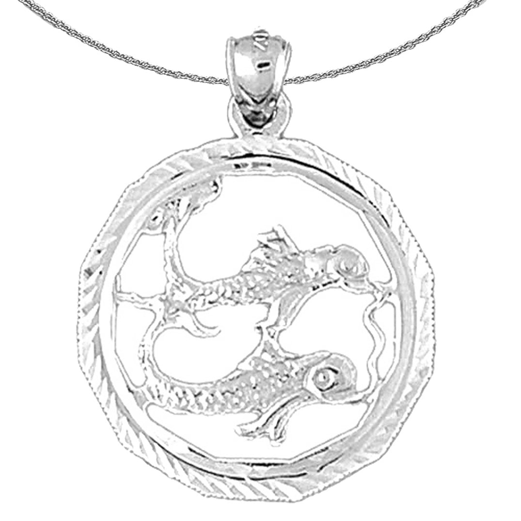 Sterling Silver Pisces Zodiac Sign Pendant (Rhodium or Yellow Gold-plated)